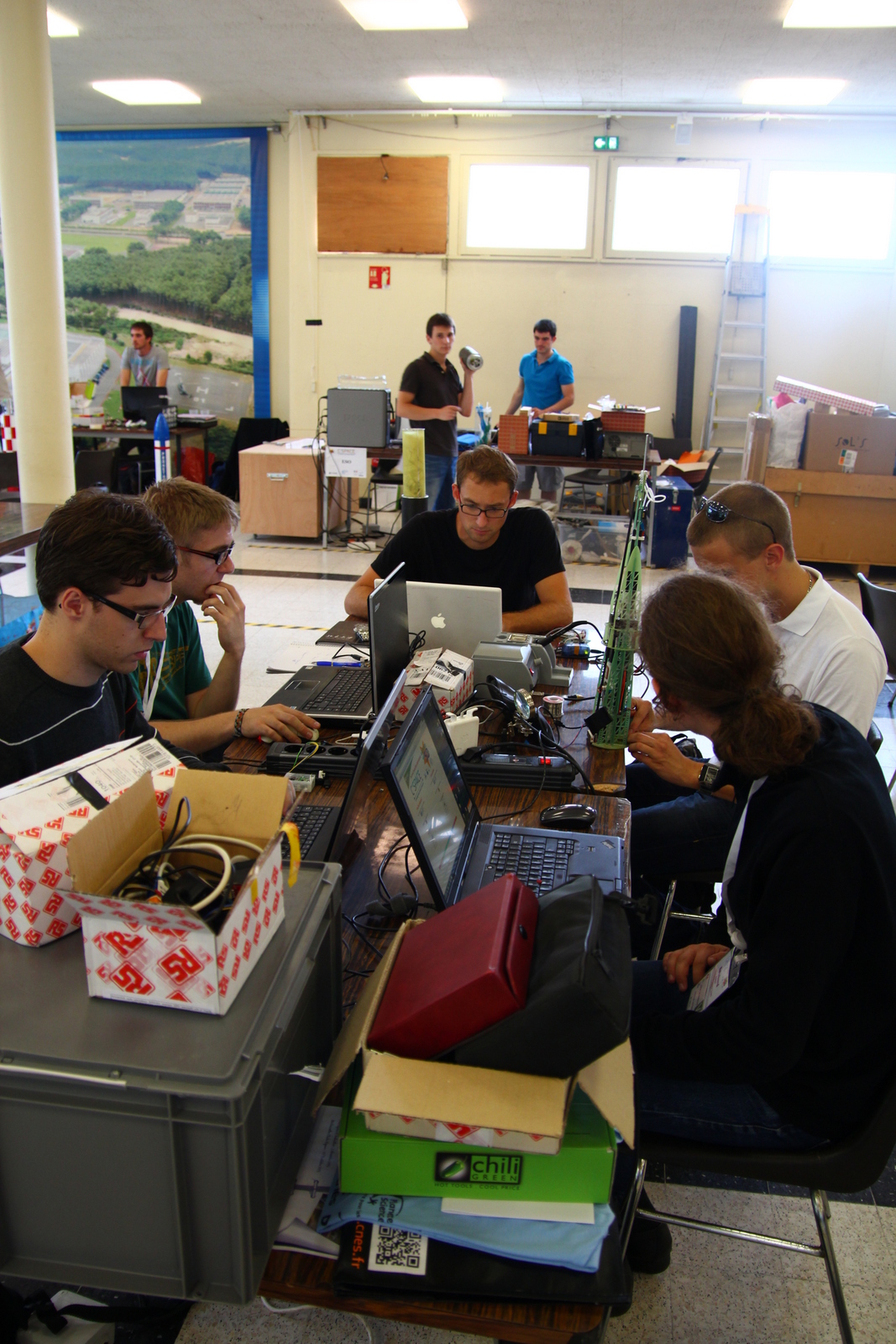After twenty 21.5 hours of traveling with two cars and some breaks we finally arrived at Biscarosse and started to unpack. At the moment everything is in time and we built our workplace and started to assemble everything to make a final simulation at the evening.