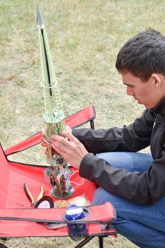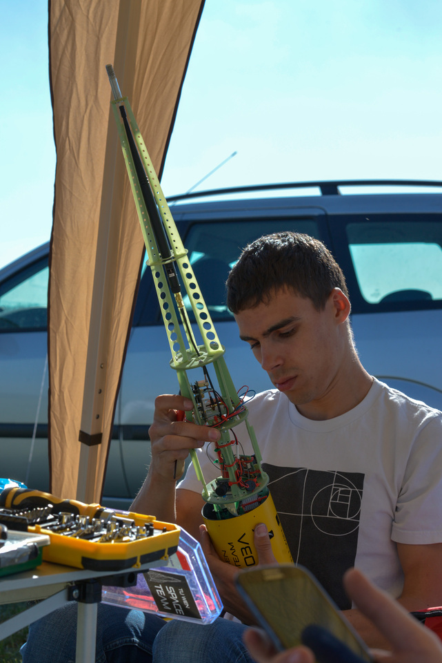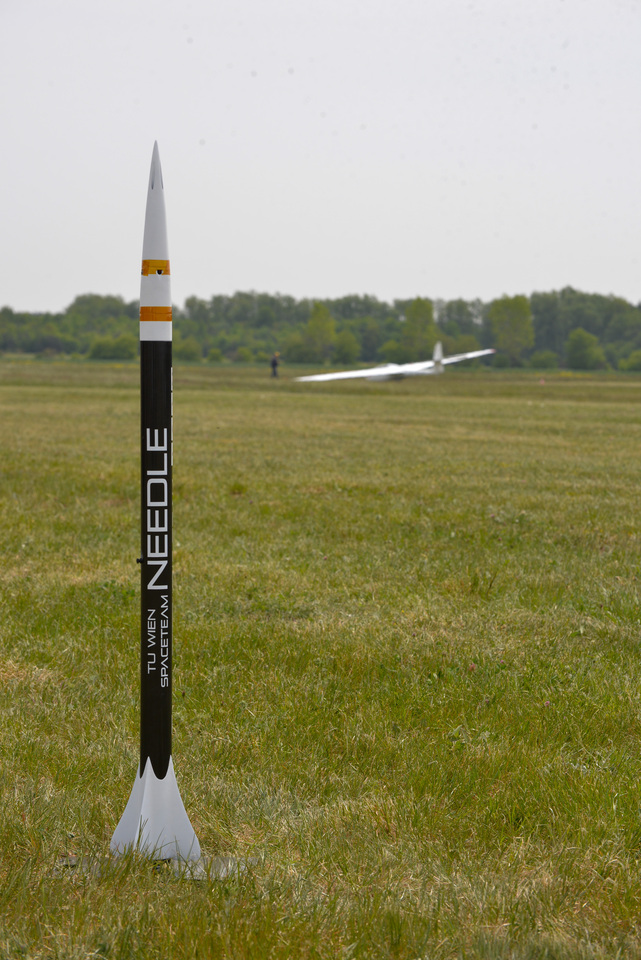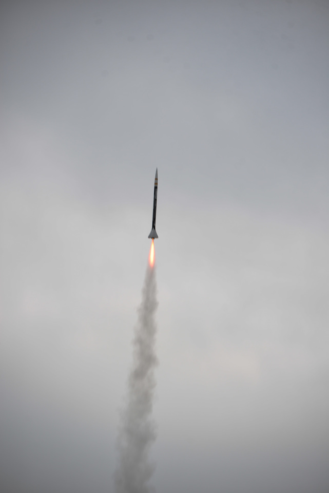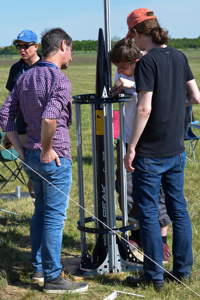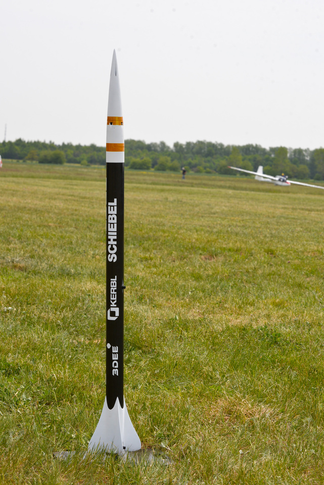 Es gab auch einen Jungfernflug: Die STR-Needle, eine fast völlig 3D-gedruckte Rakete wurde auf ca. 900 m geschossen. Leider kam es hier zum Versagen des Fallschirms und durch diese enorme Belastung bei der Landung zum Bruch der 3D-gedruckten Finnen.