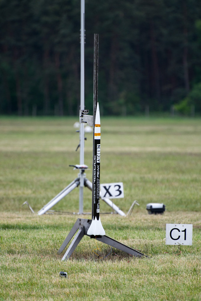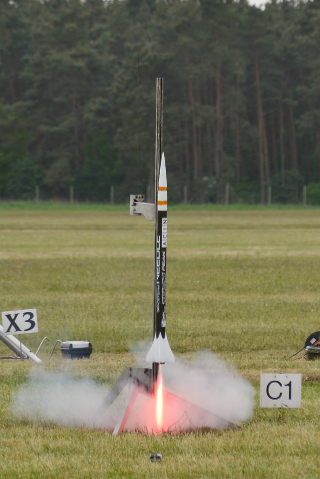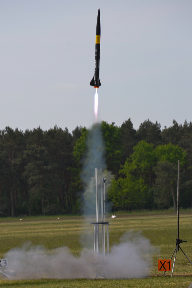 | STR-Needle | 900 m | AT H148R | Fast völlig 3D-gedruckte Rakete. Fallschirmversagen nach der Trennung, Finnebruch bei der Landung. | 5,6 cm | 123 cm | 1,1 kg |