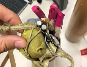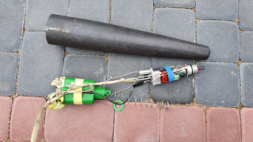 In addition to further telemetry tests, the newly adapted recovery concept was tested on both rocket stages. The following picture shows the main parachute, protected by a fireproof deployment bag, dual redundant linecutters, and triple redundant deployment charges. These charges eject the nose cone from the airframe and release the drogue parachute. Because this happens at an altitude of more than 10 km, special measures have to be taken for them to work reliably even at low air pressure.