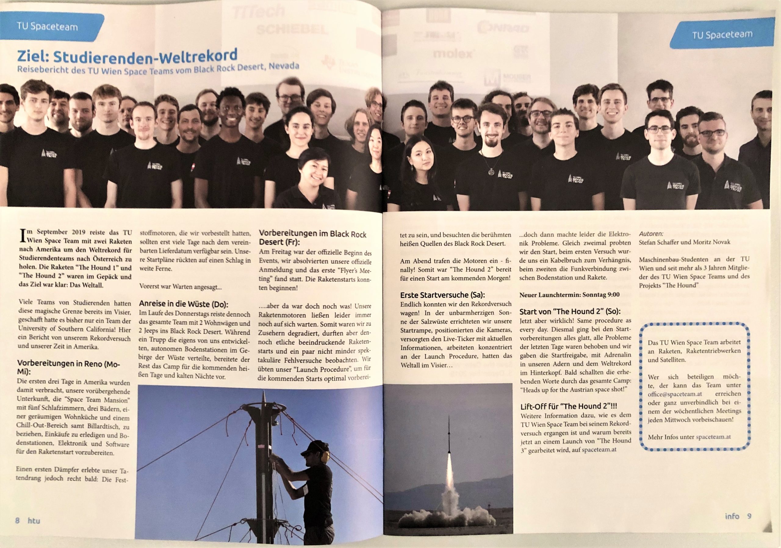 Die Mitarbeiterzeitung der TU Wien «TU frei|haus» berichtet unter dem Titel «To boldly go where no student has gone before» über die Aktivitäten des Space Teams wie den Raketenbewerben in Frankreich und dem CanSat-Projekt.